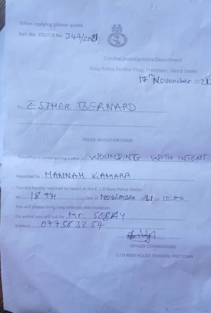 The situation escalated when Esther was accused of assaulting Hannah following a dispute. A formal complaint was lodged at the Kissy Police Station, and Esther was invited for questioning. When she failed to report, police issued a warrant of arrest, intensifying the standoff.