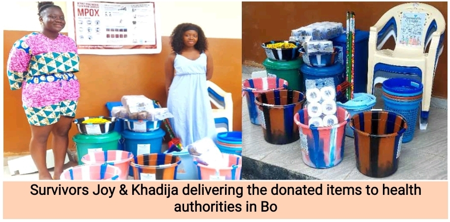 As Bo District continues to record an increase in Mpox cases, two survivors have stepped up to support the local healthcare system. On May 30, 2025, Joy Faith Kabba and Khadija Sesay, both Mpox survivors, donated a large quantity of assorted Infection Prevention and Control (IPC) items to the Bo Government Hospital.