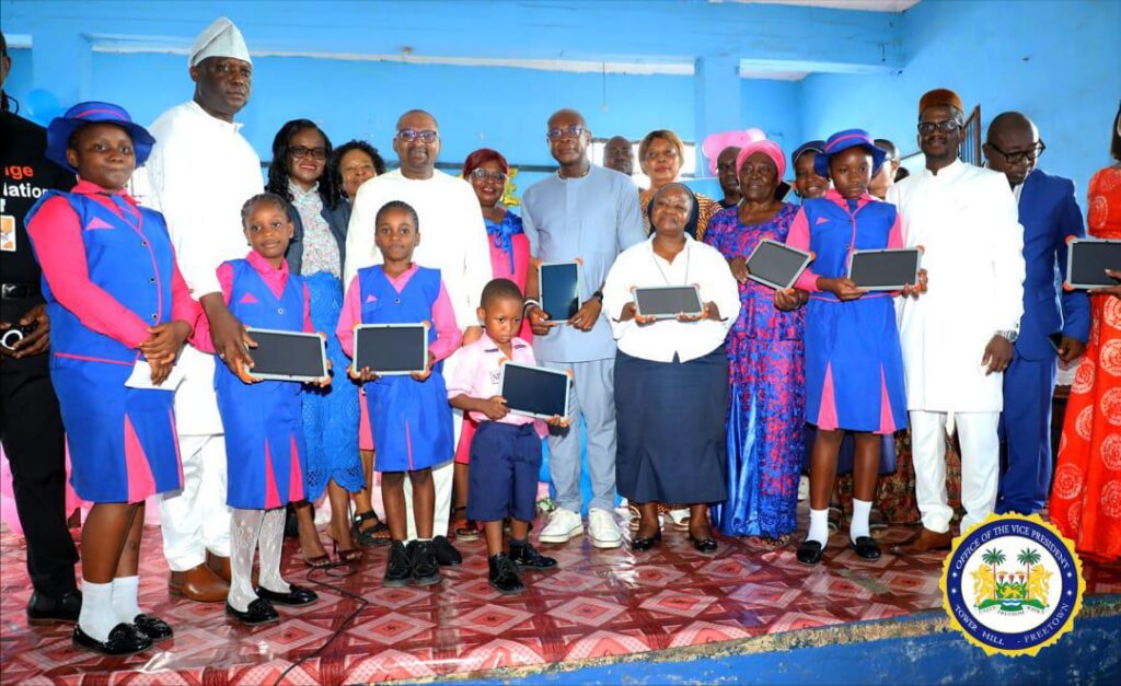 Sierra Leone’s Vice President Dr. Mohamed Juldeh Jalloh on Tuesday, November 11, 2025, donated digital school kits to Modern Elementary and St. Joseph’s Primary Schools in Freetown.